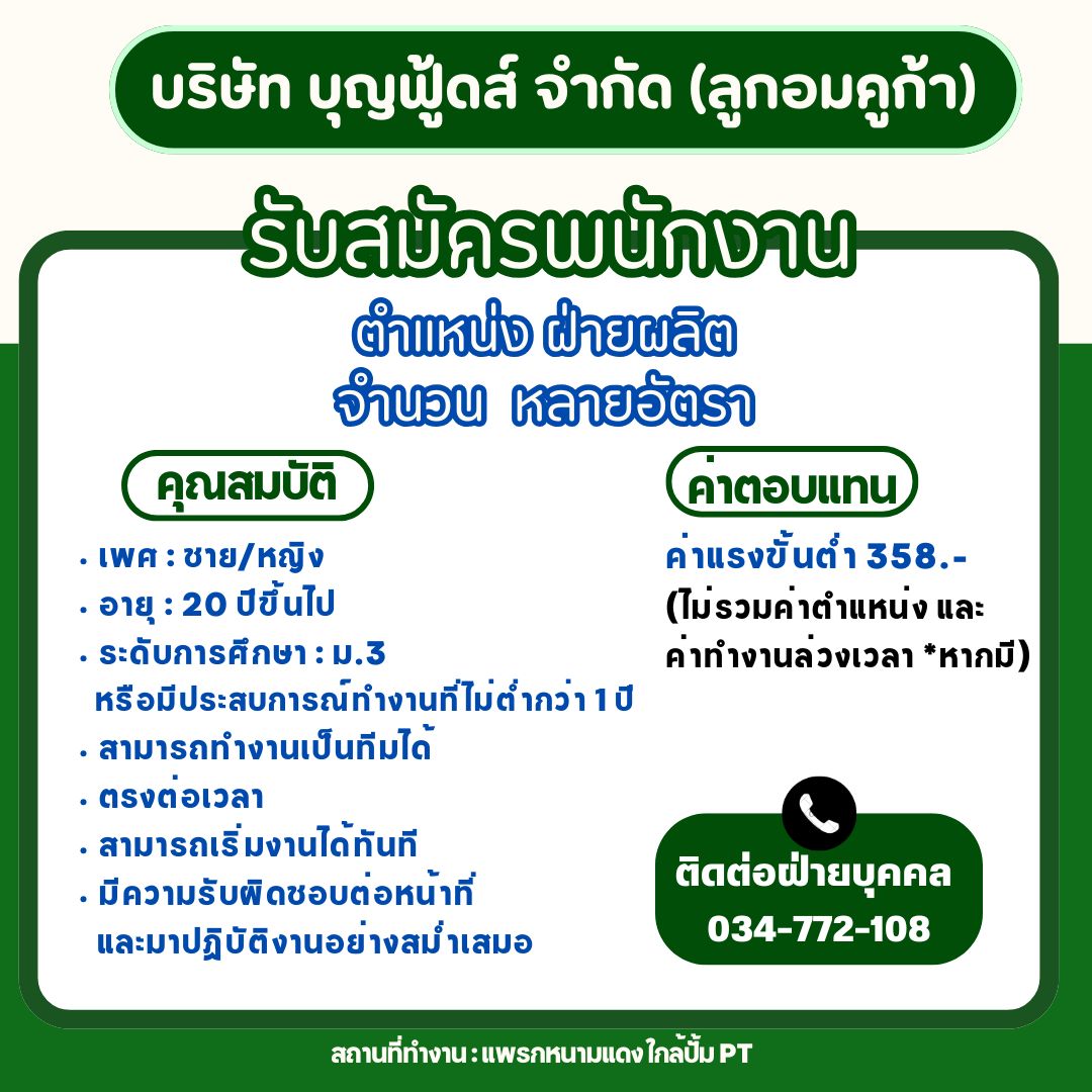 หรือติดต่อฝ่ายบุคคลที่เบอร์ 034-772-108